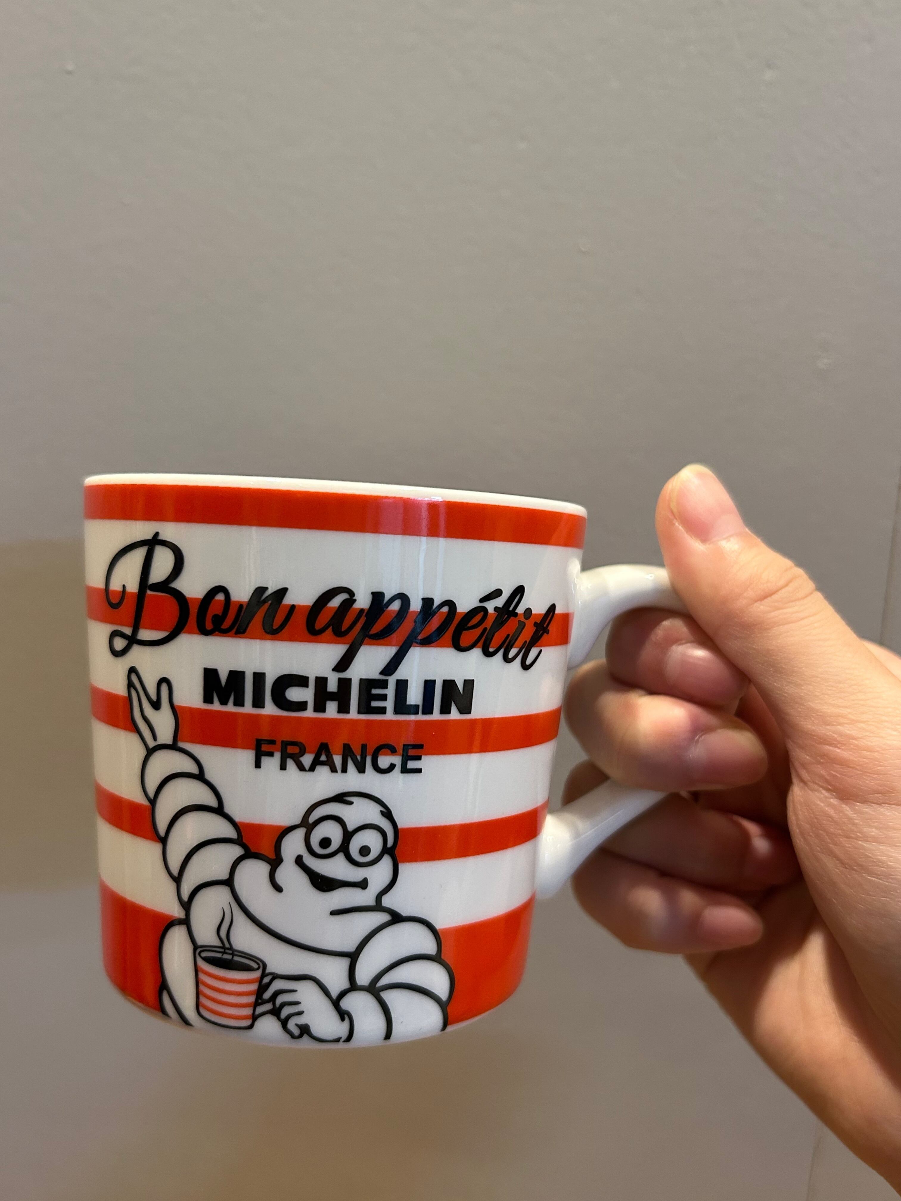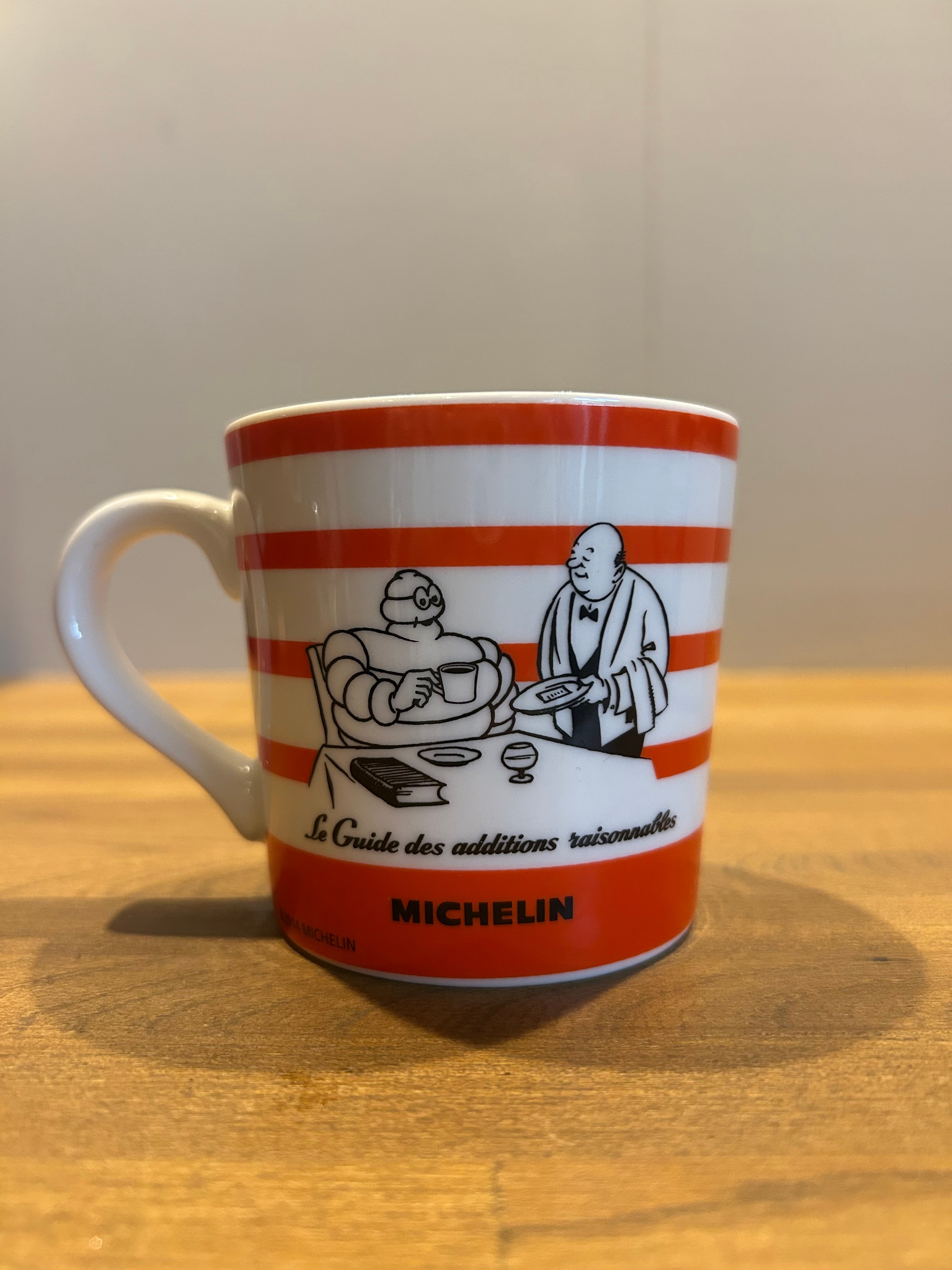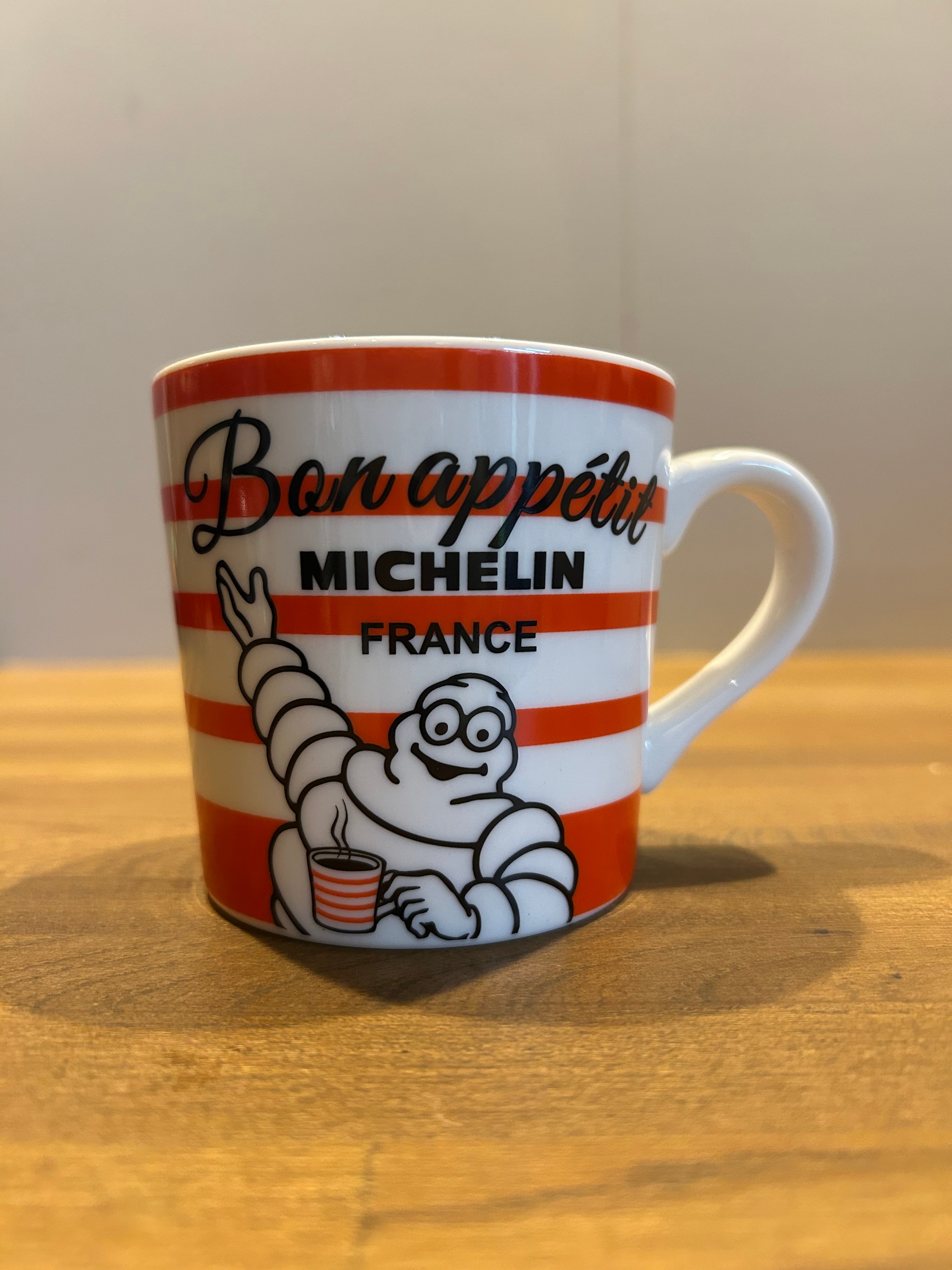 オレンジのストライプが施されたこのマグカップは、朝のコーヒータイムやティータイムにぴったり!